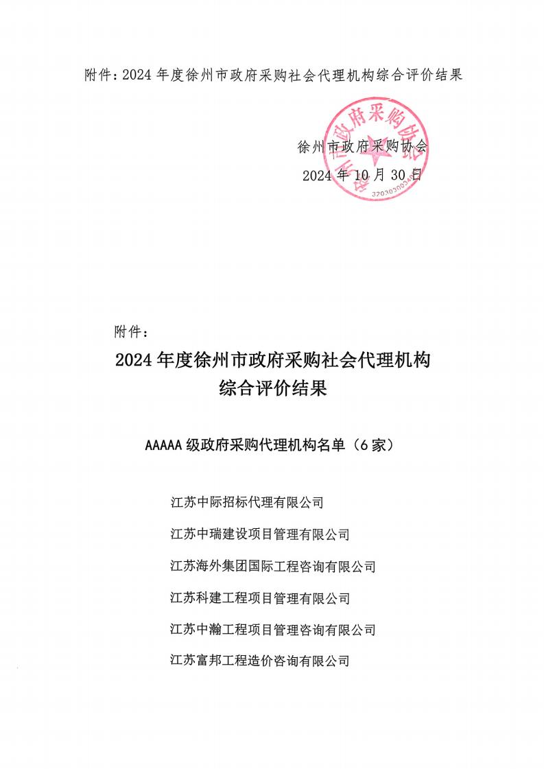关于2024年度徐州市政府采购社会代理机构综合评价结果的通知
